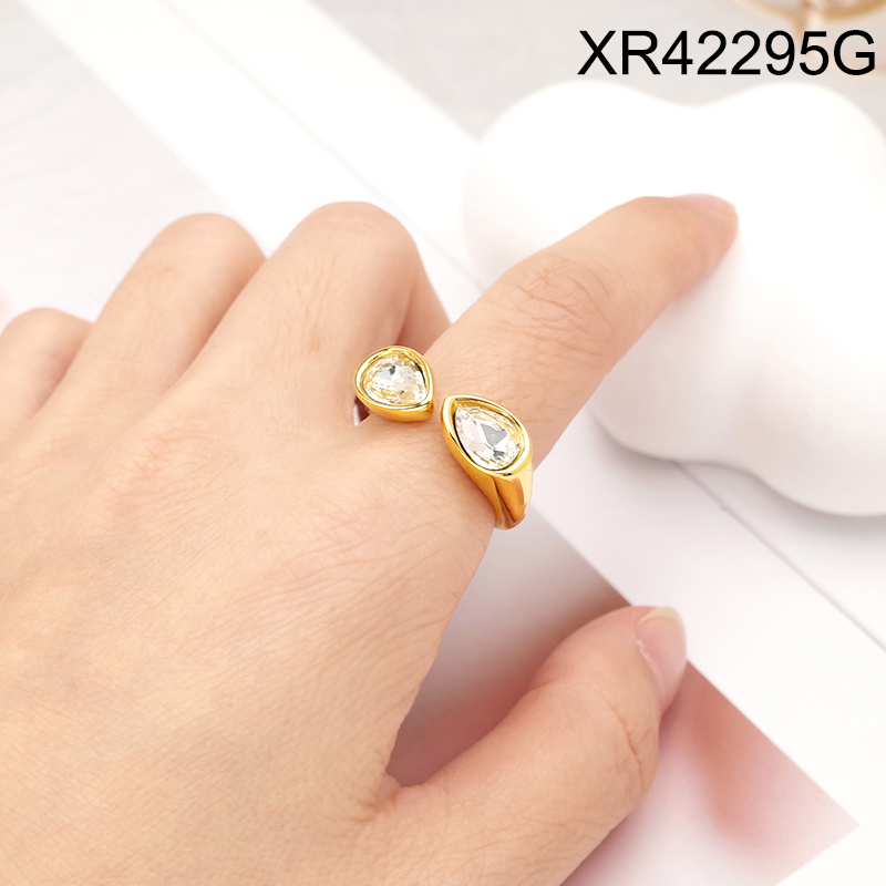 Level A Stainless Steel New Trendy Women Jewelry White Rhinestone Golden Open Rings;Ring size can be adjusted freely