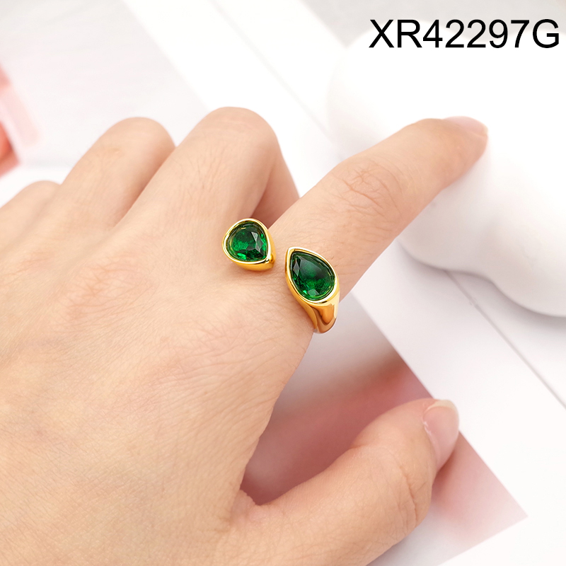 Level A Stainless Steel New Trendy Women Jewelry Green Rhinestone Golden Open Rings;Ring size can be adjusted freely