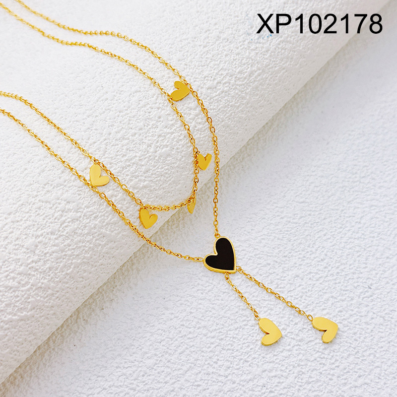 Level B Stainless Steel New Trendy Women Jewelry Two Layers Chain Heart Golden Valentine's Day Pendant
