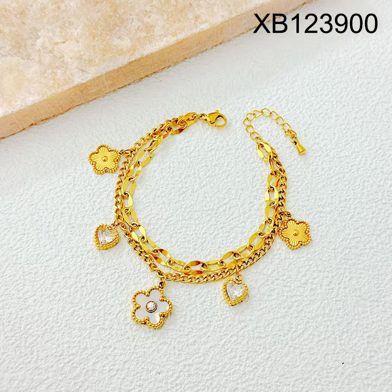 Home > Level B Stainless Steel New Trendy Women Jewelry Two Layer Chain Flower Heart Golden Bracelet