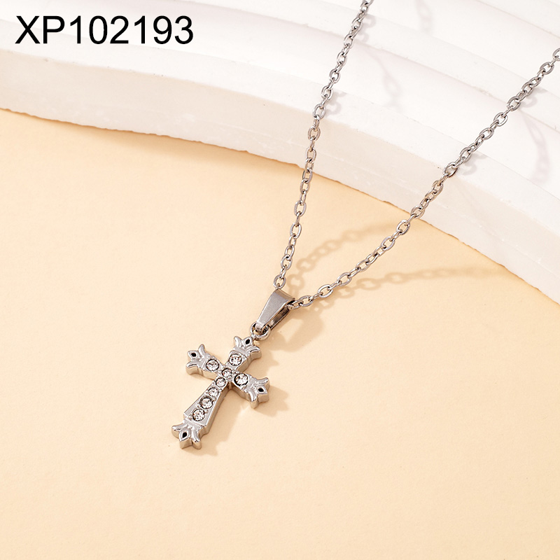 Level B Stainless Steel New Trendy Women Jewelry Cross Steel color Pendant
