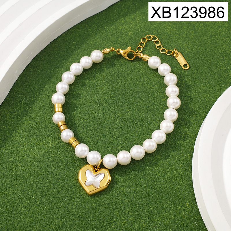 Level B Stainless Steel New Trendy Women Jewelry Pearl Style/Plastic Beads Heart Golden Bracelet