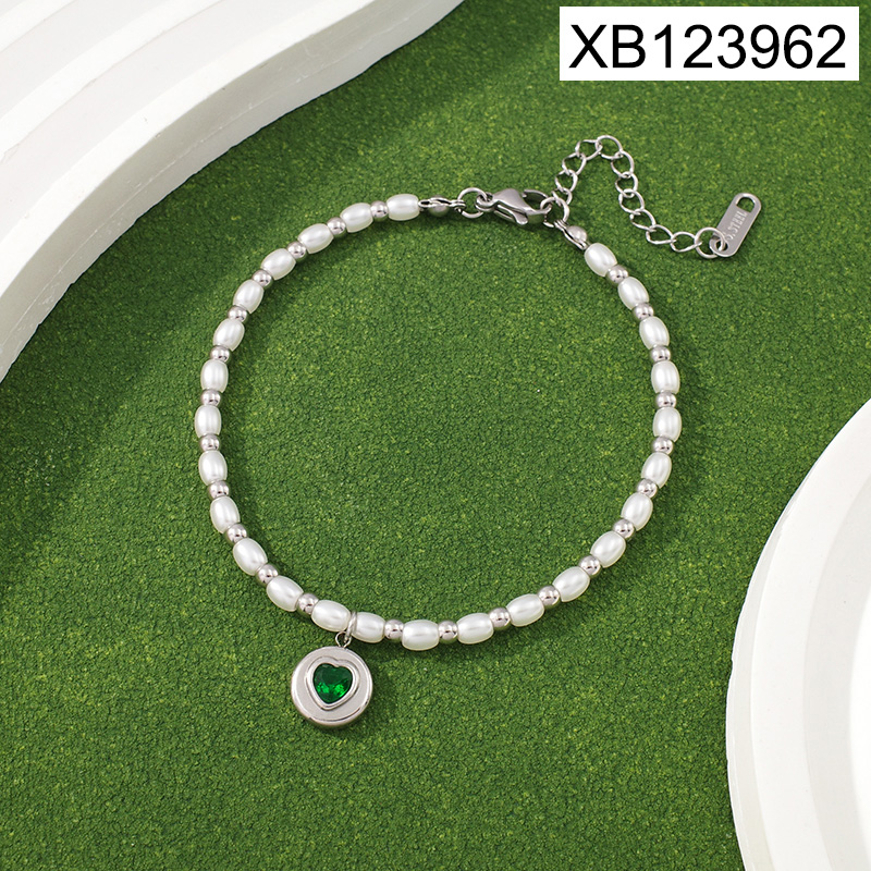 Level B Stainless Steel New Trendy Women Jewelry Pearl Style/Plastic Beads Round Heart Steel color Bracelet
