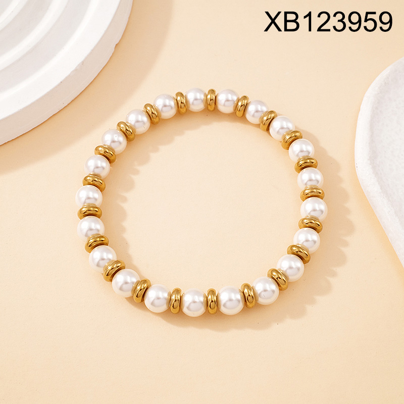 Level B Stainless Steel New Trendy Women Jewelry Pearl Style/Plastic Beads Golden Elastic Bracelet