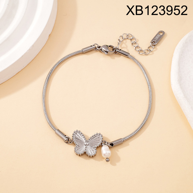 Level B Stainless Steel New Trendy Women Jewelry Pearl Style/Plastic Beads Animal Butterfly Steel color Bracelet