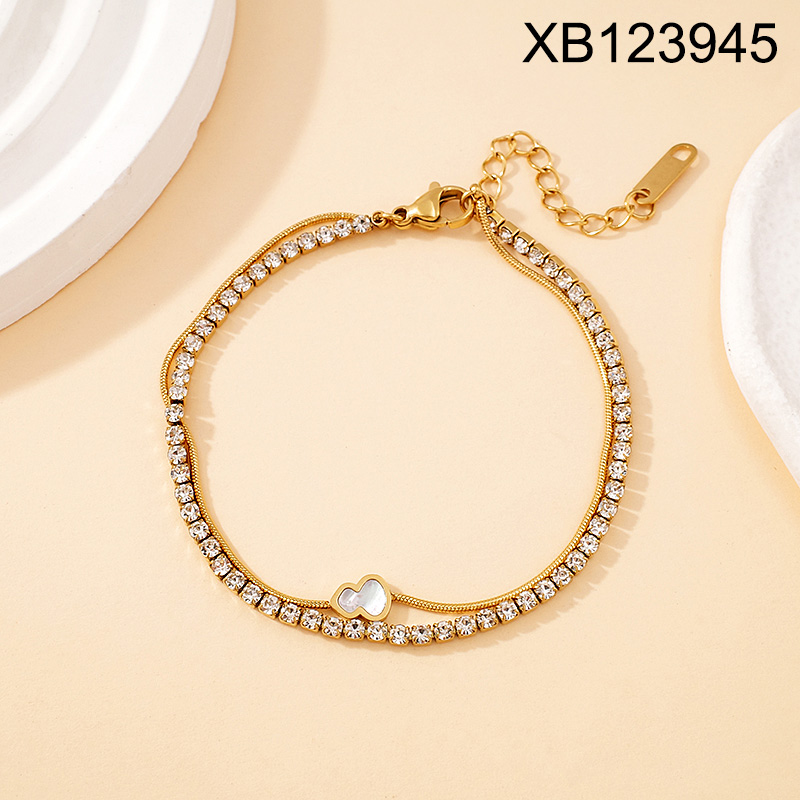 Home > Level B Stainless Steel New Trendy Women Jewelry Two Layers Chain White Rhinestone Calabash Golden Bracelet