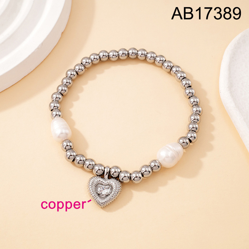 Home > Level B Fashion Jewelry New Trendy Women Jewelry Pearl Style/Plastic Beads Heart Steel color Elastic Bracelet;Material:copper (cobre)