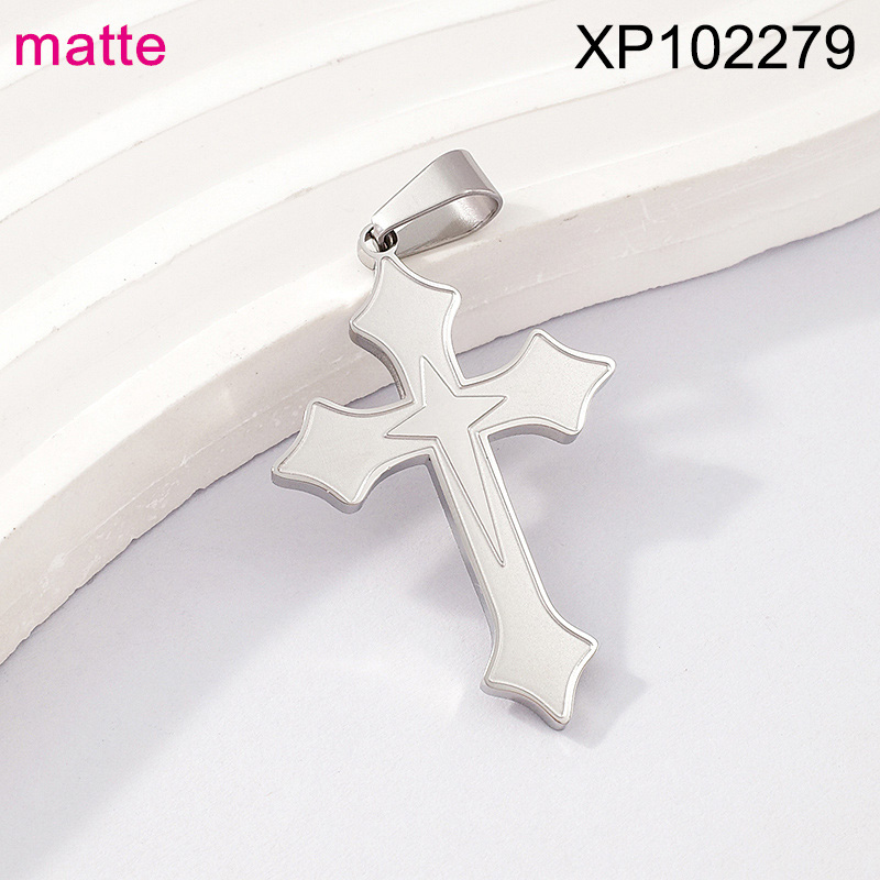 Level B Stainless Steel New Trendy Man Jewelry Cross Steel color Matte Pendant