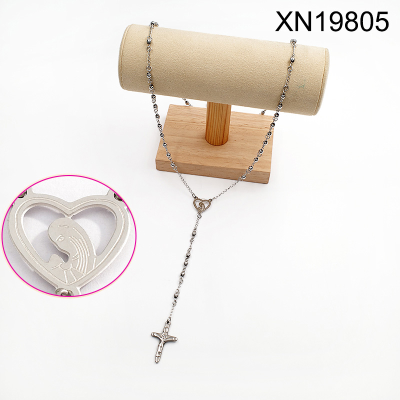 Level B Stainless Steel New Trendy Women Jewelry Bead Chain Religion Cross Steel color Necklace