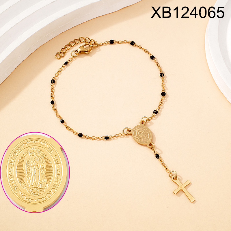 Home > Level B Stainless Steel New Trendy Women Jewelry Drip Oil/Enamel Bead Chain Religion Cross Golden Bracelet