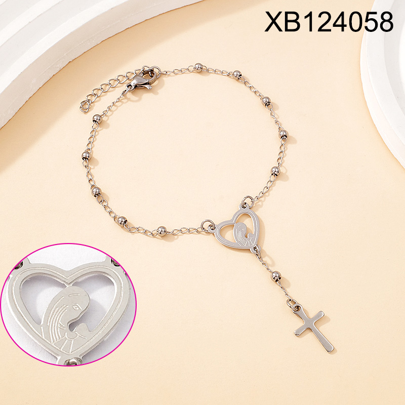 Level B Stainless Steel New Trendy Women Jewelry Bead Chain Religion Cross Steel color Bracelet