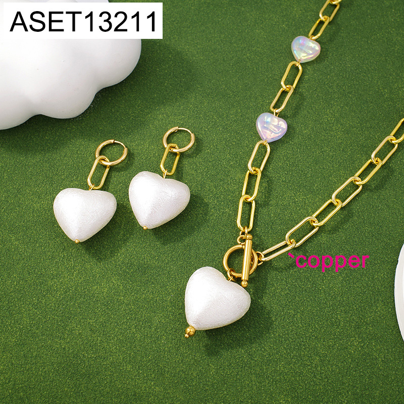 Level B Fashion Jewelry New Trendy Women Jewelry Pearl Style/Plastic Beads Heart Golden SET;Material:copper (cobre)