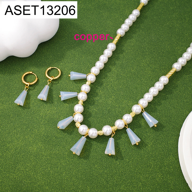 Level B Fashion Jewelry New Trendy Women Jewelry Pearl Style/Plastic Beads Golden SET;Material:copper (cobre)