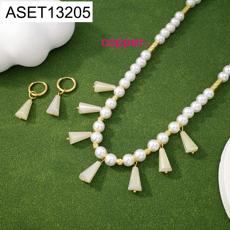 Level B Fashion Jewelry New Trendy Women Jewelry Pearl Style/Plastic Beads Golden SET;Material:copper (cobre)