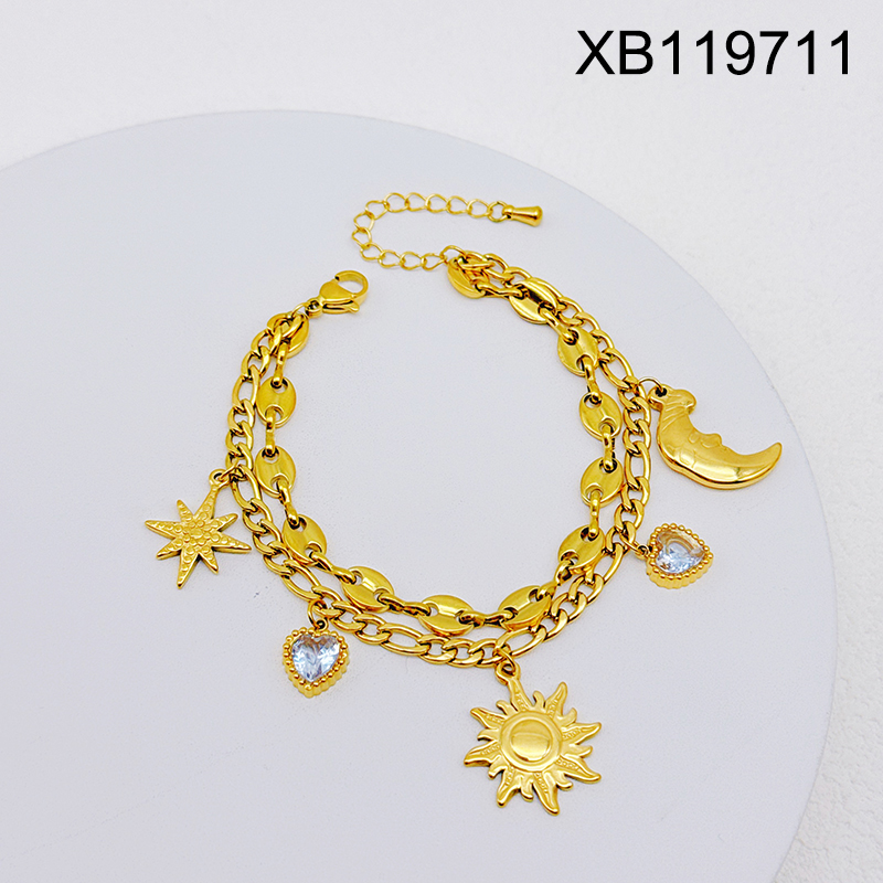 Level B Stainless Steel New Trendy Women Jewelry Two Layers Chain Sun&Moon Heart Golden Valentine's Day Bracelet