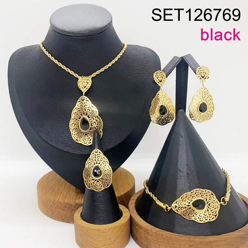 Level B Stainless Steel New Trendy Women Jewelry Black Stone Water Drip Golden 4pcs SET