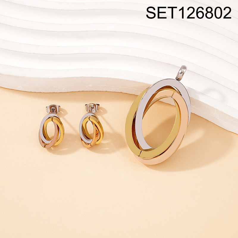 Level B Stainless Steel New Trendy Women Jewelry Oval Three Tone SET