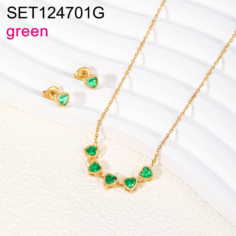 Level A Stainless Steel New Trendy Women Jewelry Sticky Stone Green Rhinestone Heart Golden Valentine's Day Bracelet