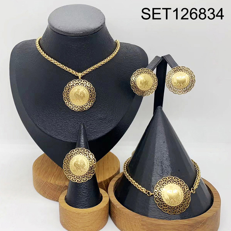 Level B Stainless Steel New Trendy Women Jewelry Animal Chicken Coin Golden 4pcs SET