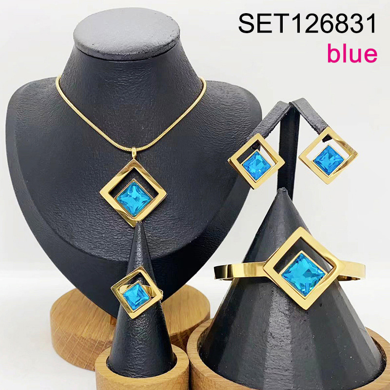 Level B Stainless Steel New Trendy Women Jewelry Blue Glass Square Golden 4pcs SET