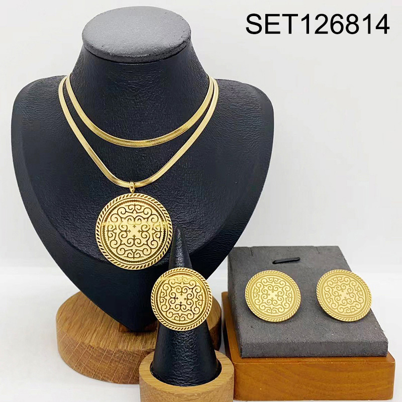 Level B Stainless Steel New Trendy Women Jewelry Two Layers Chain Round Golden 3pcs SET