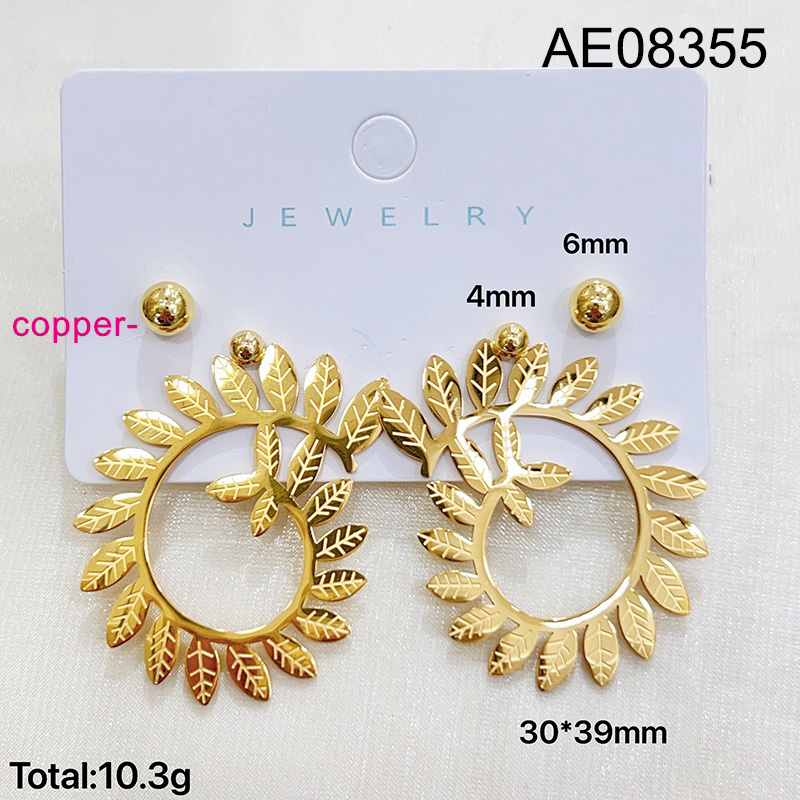 Level B Fashion Jewelry New Trendy Women Jewelry Leaf Golden Earrings;Material:copper (cobre)