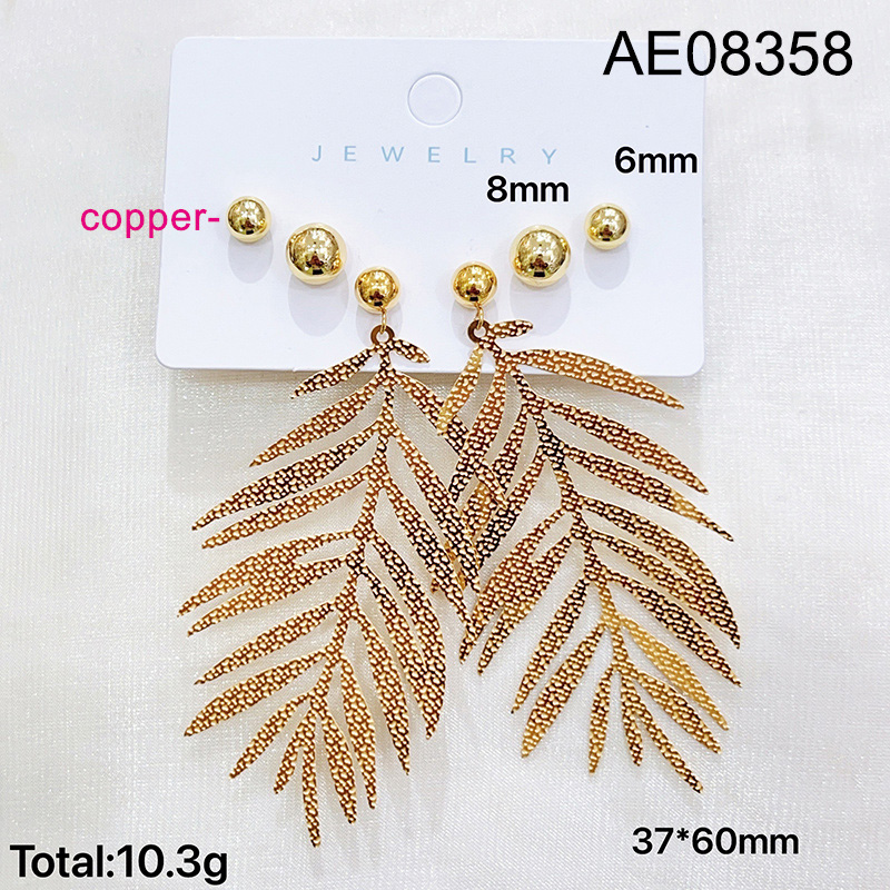 Level B Fashion Jewelry New Trendy Women Jewelry Leaf Golden Earrings;Material:copper (cobre)