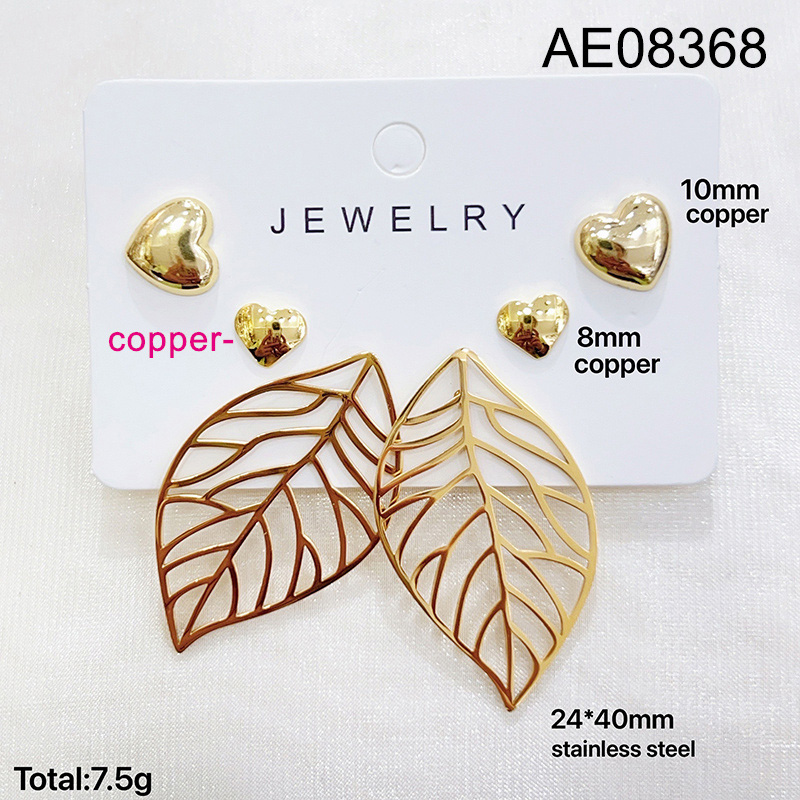 Level B Fashion Jewelry New Trendy Women Jewelry Leaf Heart Golden Earrings;Material:copper (cobre)