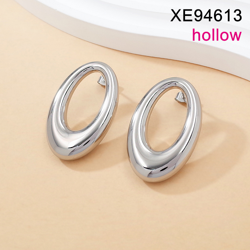 Home > Level B Stainless Steel New Trendy Women Jewelry Oval Steel color Hollow Earrings