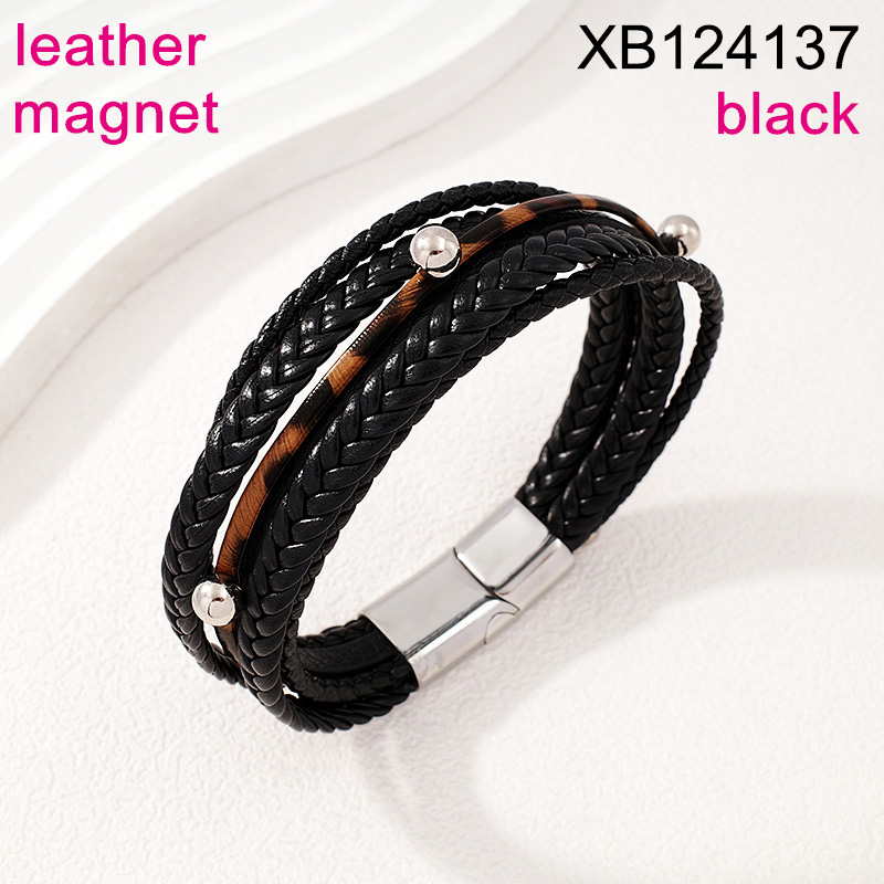 Home > Level B Stainless Steel New Trendy Man Jewelry Five Layers Chain Steel color Magnet buckle Leather Bracelet