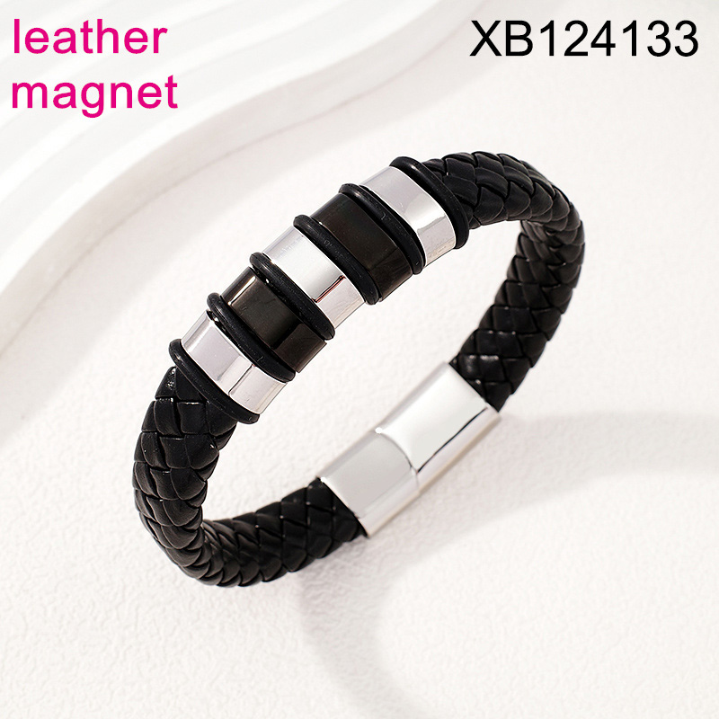 Home > Level B Stainless Steel New Trendy Man Jewelry Steel color Magnet buckle Leather Bracelet
