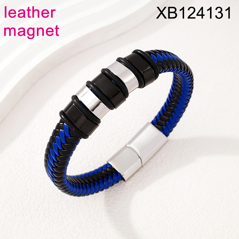 Home > Level B Stainless Steel New Trendy Man Jewelry Two Tone Magnet buckle Leather Bracelet
