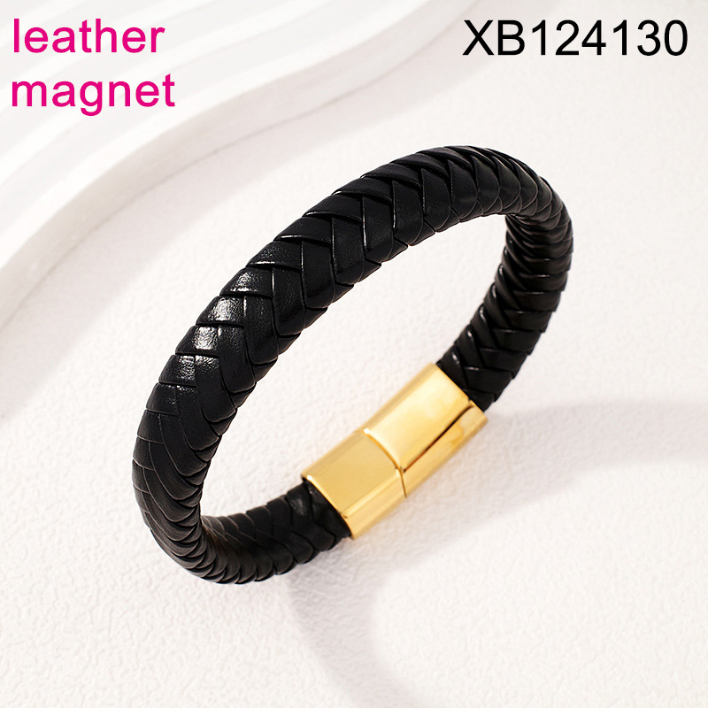 Home > Level B Stainless Steel New Trendy Man Jewelry Golden Magnet buckle Leather Bracelet