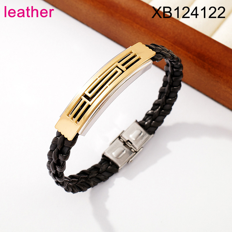 Level B Stainless Steel New Trendy Man Jewelry Great Wall Pattern Two Tone Leather Bracelet