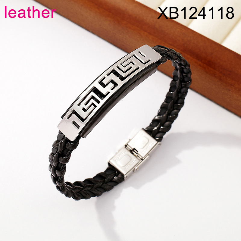 Home > Level B Stainless Steel New Trendy Man Jewelry Great Wall Pattern Steel color Leather Bracelet