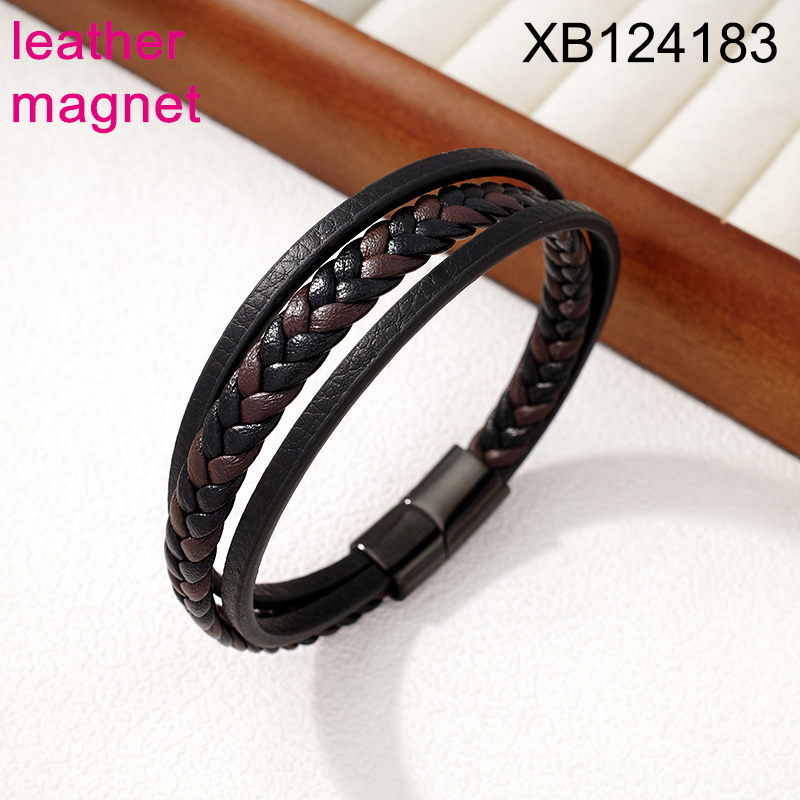 Home > Level B Stainless Steel New Trendy Man Jewelry Three Layer Chain Plating Black Magnet buckle Leather Bracelet