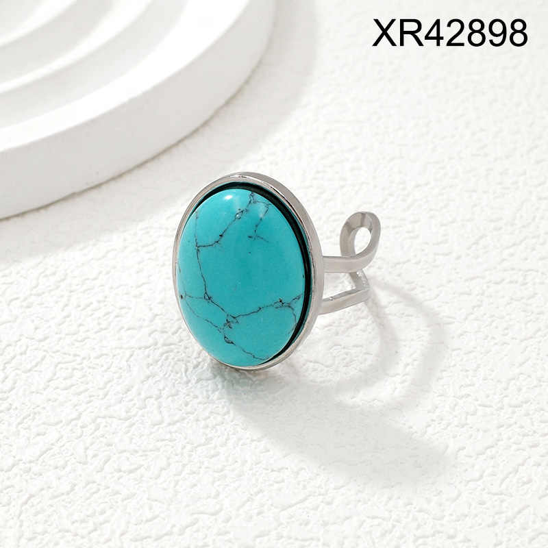 Home > Level B Stainless Steel New Trendy Women Jewelry Oval Natural Stone Steel color Open Rings;Ring size can be adjusted freely