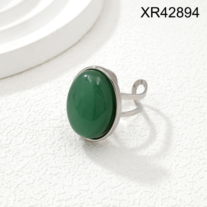 Level B Stainless Steel New Trendy Women Jewelry Oval Natural Stone Steel color Open Rings;Ring size can be adjusted freely
