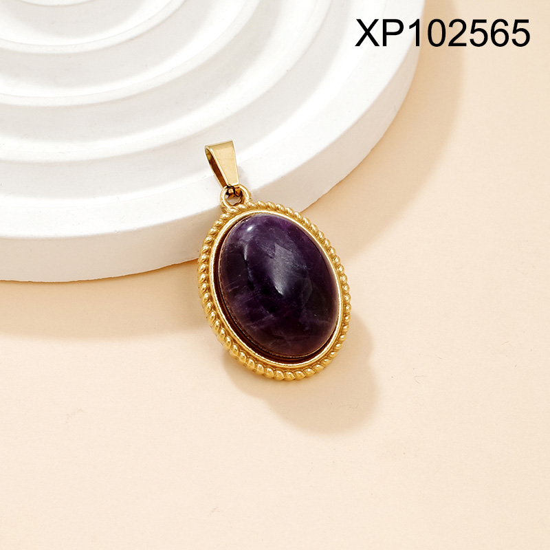 Level B Stainless Steel New Trendy Women Jewelry Oval Natural Stone Golden Pendant