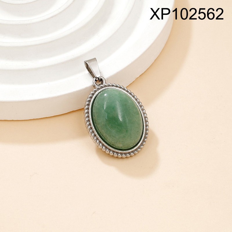 Level B Stainless Steel New Trendy Women Jewelry Oval Natural Stone Steel color Pendant
