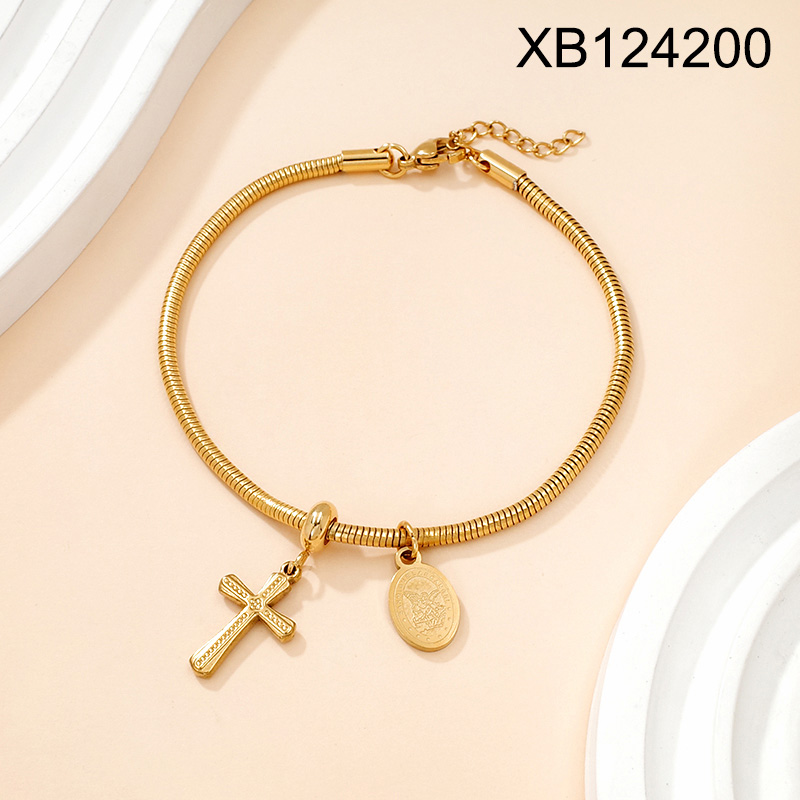 Level B Stainless Steel New Trendy Women Jewelry Religion Cross Golden Bracelet