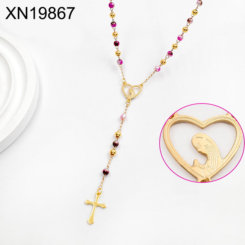 Level B Stainless Steel New Trendy Women Jewelry Bead Chain Religion Cross Golden Necklace
