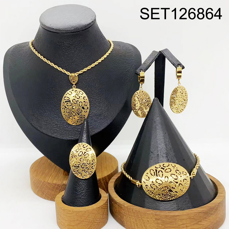 Level B Stainless Steel New Trendy Women Jewelry Oval Golden 4pcs SET