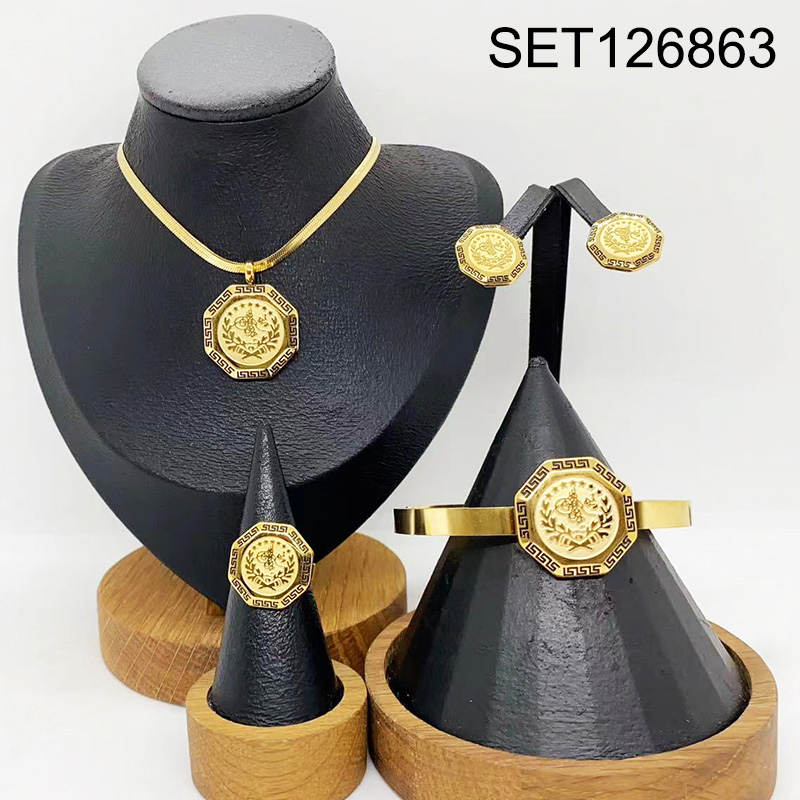 Home > Level B Stainless Steel New Trendy Women Jewelry Great Wall Pattern Coin Golden 4pcs SET