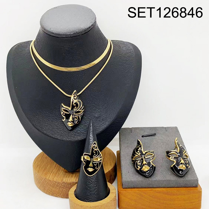 Level B Stainless Steel New Trendy Women Jewelry Two Layers Chain Mask Golden 3pcs SET