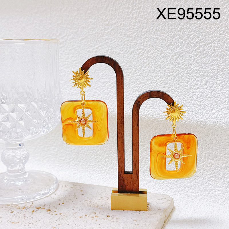 Level B Stainless Steel New Trendy Women Jewelry Sun Eight-Pointed Star Golden Earrings