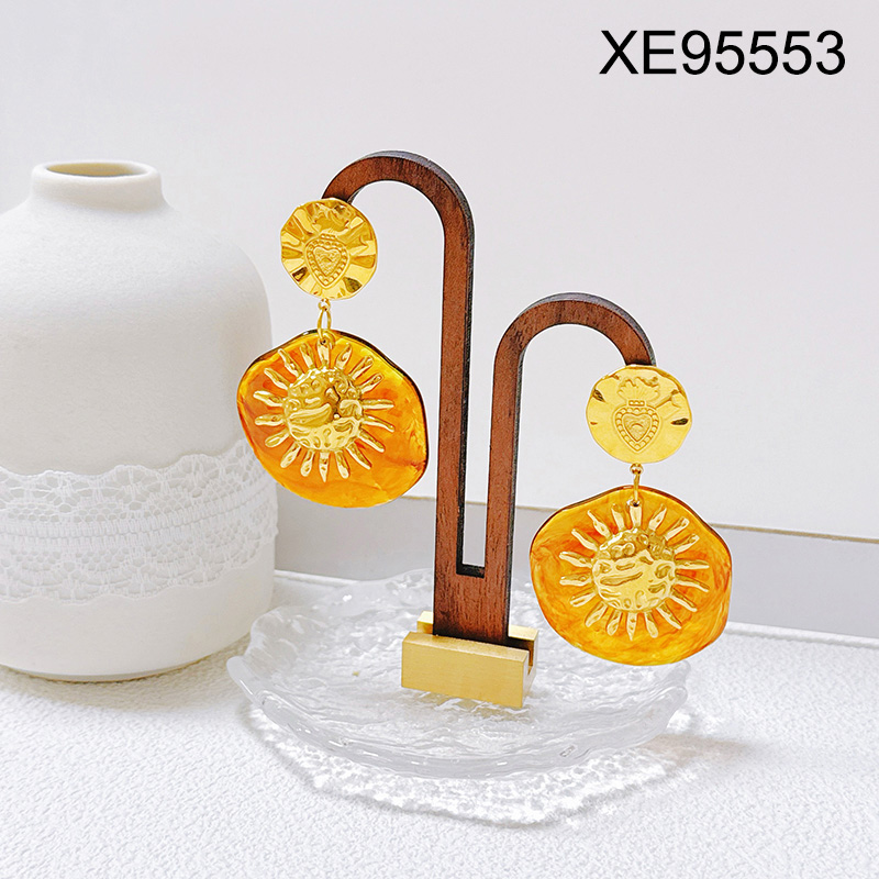 Home > Level B Stainless Steel New Trendy Women Jewelry Sun Heart Golden Earrings