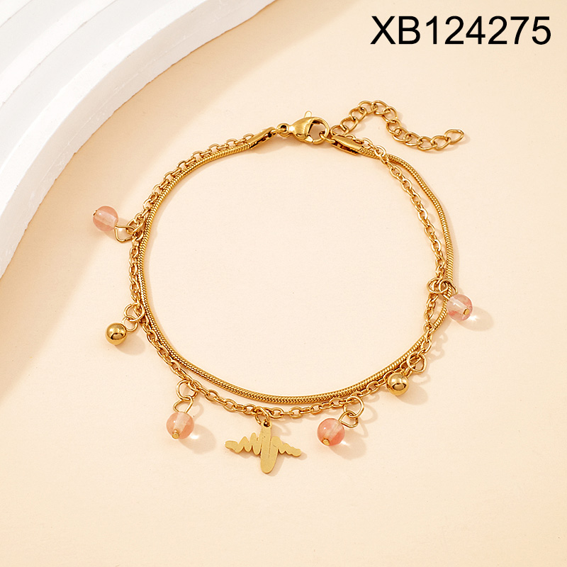 Level B Stainless Steel New Trendy Women Jewelry Two Layers Chain Electrocardiogram Golden Bracelet