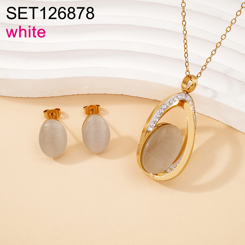 Home > Level B Stainless Steel New Trendy Women Jewelry Oval Opal Golden SET