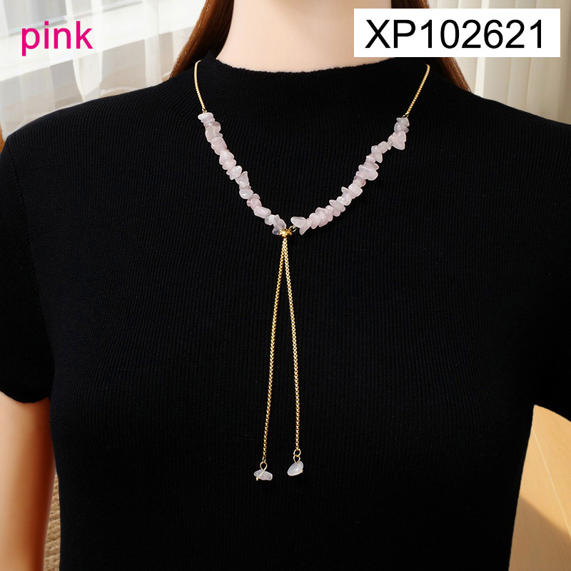 Home > Level B Stainless Steel New Trendy Women Jewelry Pink Natural Stone Golden Sweater Chain Pendant